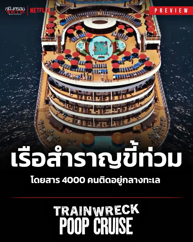 Trainwreck Poop Cruise (2025) อภิมหาวายป่วง เรือสำราญอุนจิ เหตุไฟไหม้ในห้องเครื่องทำให้ผู้โดยสารนับ 4,000 คนติดอยู่กลางทะเล โดยไม่มีไฟฟ้าและระบบระบายน้ำ ในสารคดีเกี่ยวกับ “เรือสำราญอุนจิ” สุดฉาวแห่งปี 2013 นี้